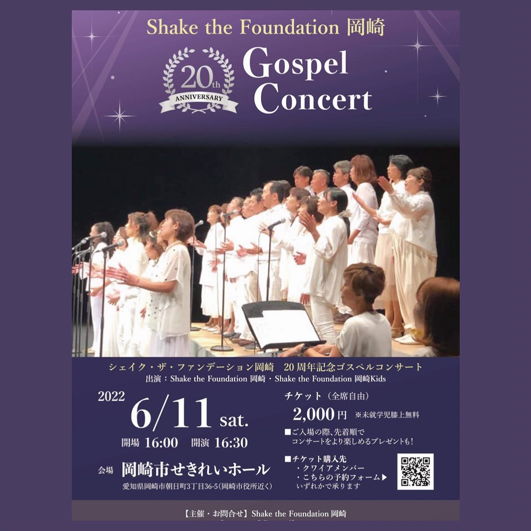 Shake the Foundation岡崎 20周年ゴスペルコンサート開催のお知らせ【2022.06.11】
