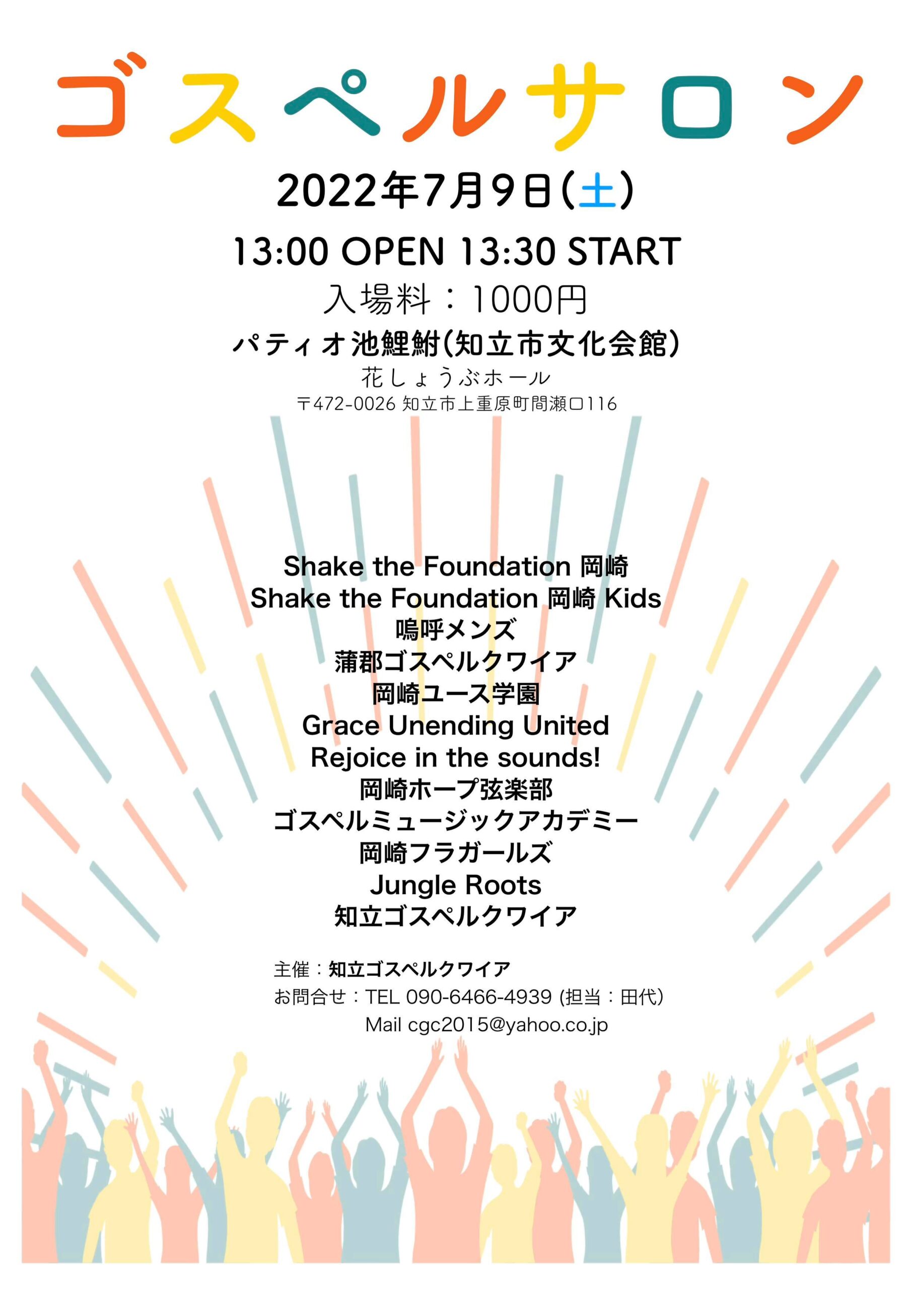 ゴスペルサロンin知立 開催のお知らせ【2022.07.09】