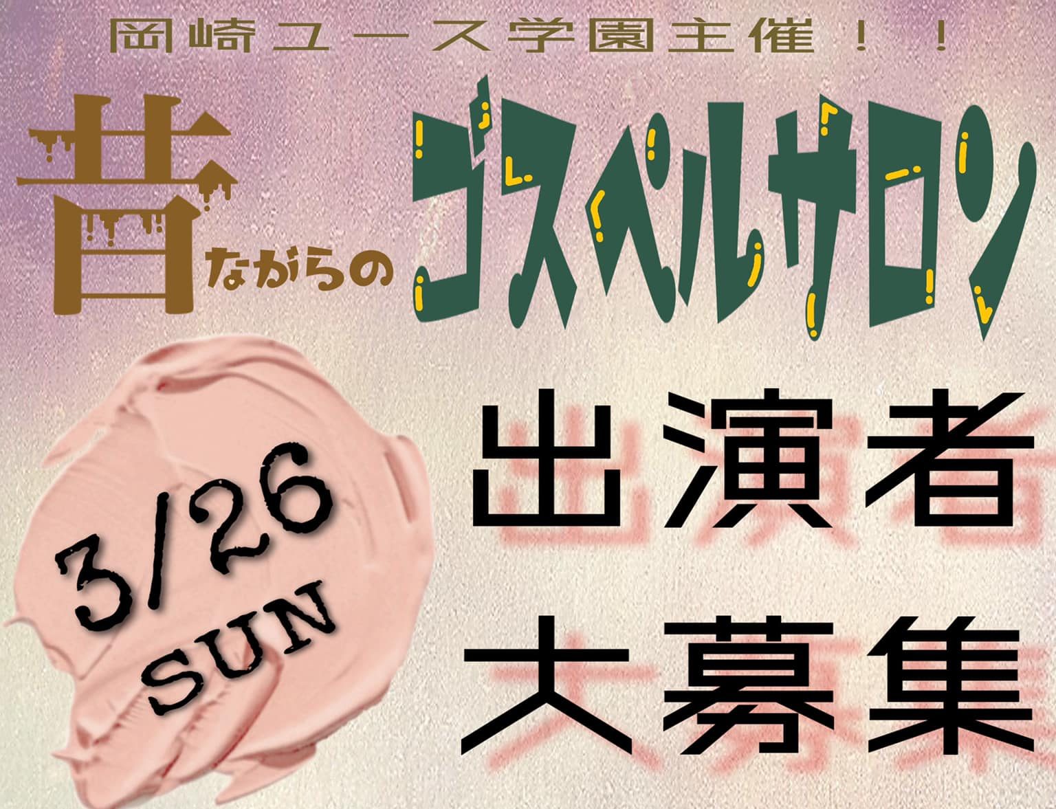 来る2023年3月26日(日)岡崎ホープチャペルにて「ゴスペルサロン(主催:岡崎ユース学園)」を開催します。入場無料です。皆様お誘いあわせの上ご参加ください。