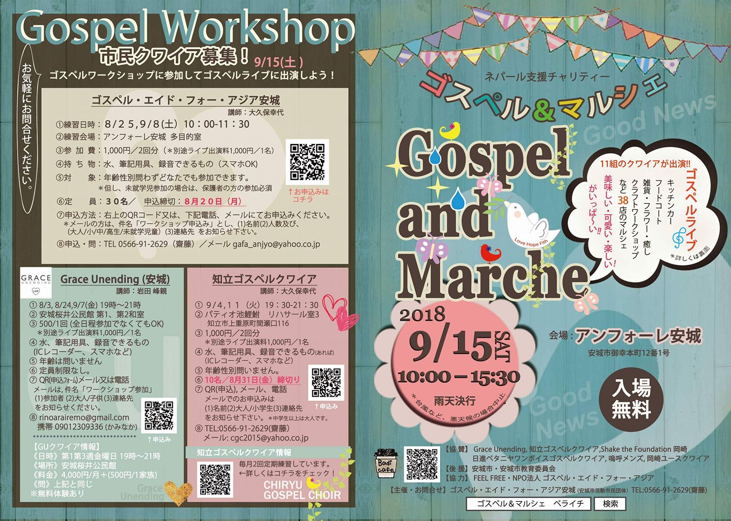 愛知県安城市・アンフォーレ安城で開催予定のチャリティイベント企画「Gospel & Marche(ゴスペル&マルシェ)」にて、岡崎ホープチャペルのゴスペルクワイア6団体が出演決定!