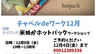 イベント チャペルdeワーク1月「米ぬかホットパック(肩用)」WS開催のお知らせ